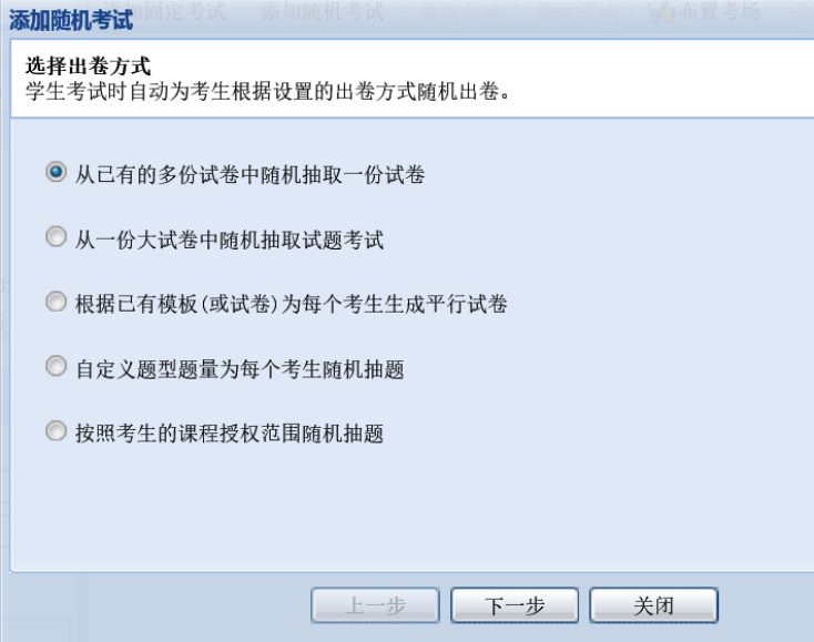 第一种随机方式:使用现有的多份试卷随机分配给考生