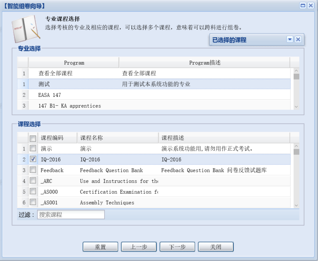 第二步:选择相关课程,决定试卷考题从哪些课程中抽取