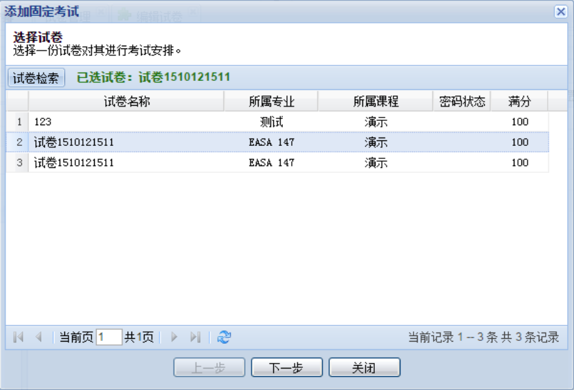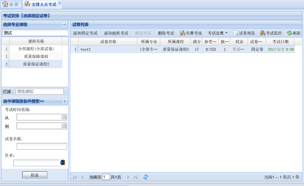 添加固定考试前必须至少有一份试卷可供选择,否则无法安排考试: